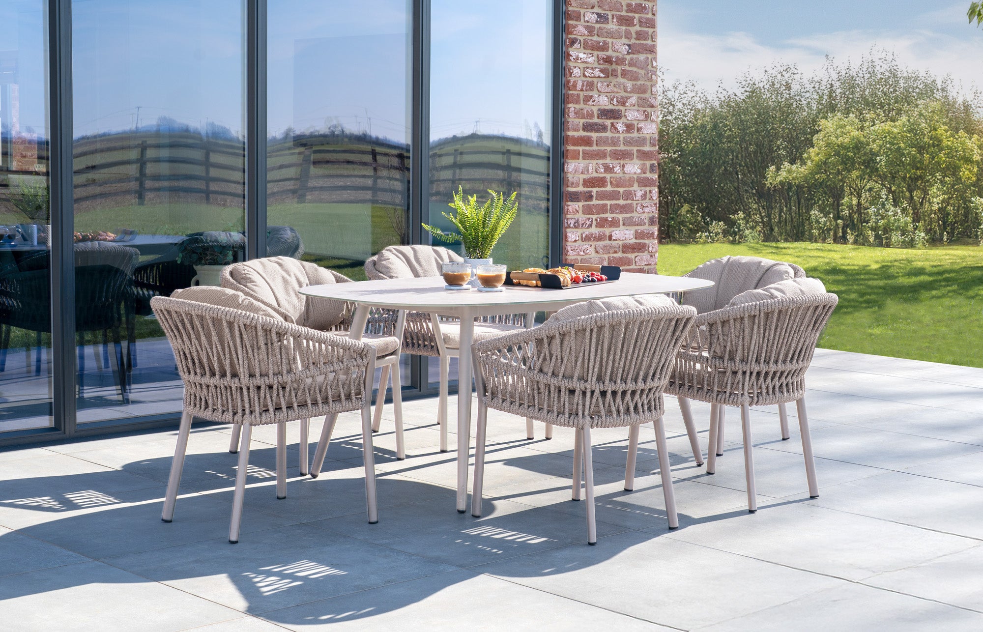 Entertain, unwind and dine outdoors with our selection of garden furniture dining sets from Harbour Lifestyle. Made from a variety of sturdy, durable materials and available in classic colours, our outdoor garden dining sets will boost your alfresco experience. Host family and friends with our lavish 8-seater sets, or enjoy an intimate evening with our cosy garden sofa sets. Whatever your style or budget, you can create a chic outdoor oasis with our casual dining garden furniture range.