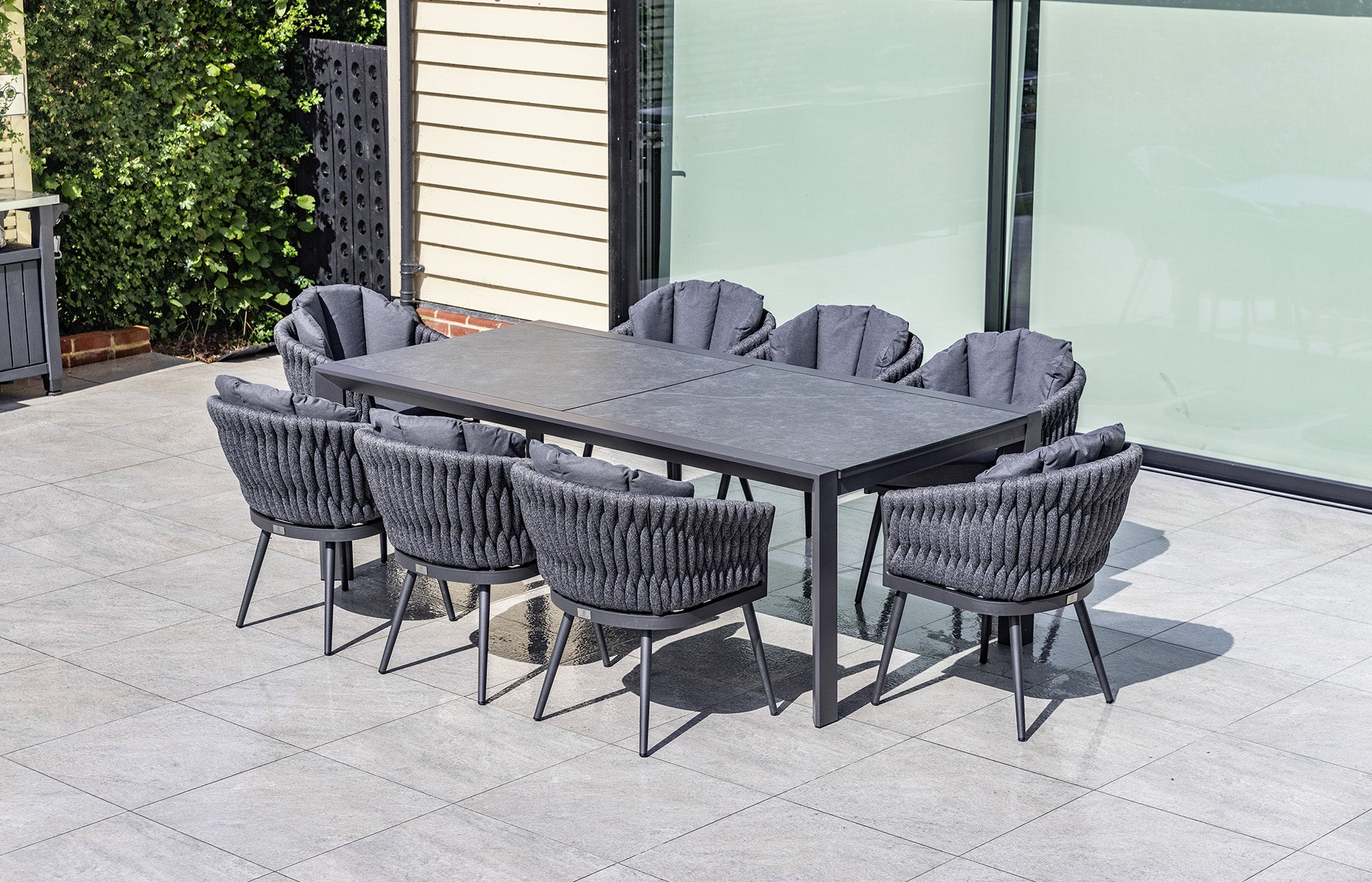 Outdoor dining is a must on warm sunny days. The good news is, you can easily inspire your own alfresco dining set up with our garden dining sets. Made with high-quality, weatherproof materials, our outdoor dining sets are perfect for lounging and entertaining no matter the season. Choose wood or rattan for a classic, laid-back look. If you want something sleek and contemporary, opt for one of our aluminium garden dining sets. In addition, the garden furniture dining sets at Harbour Lifestyle come in a variety of classic colours, including grey, charcoal and taupe. Simple and versatile, these colours will complement any space, whatever the style.
