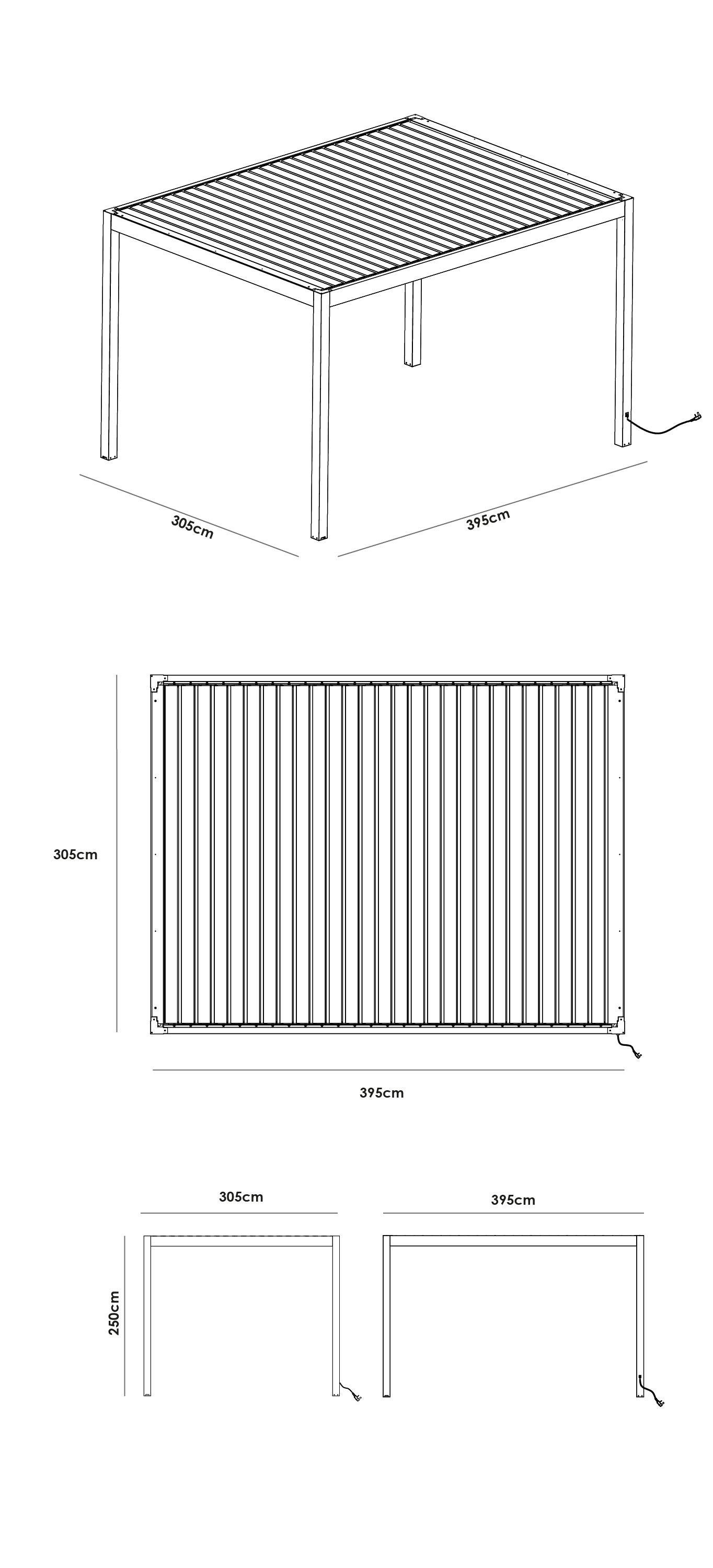 Engineered with automated adjustable louvres, this frame only model seamlessly adapts to varying conditions, ensuring a comfortable and protected environment for your garden furniture in any season. It also features a discreet drainage system, directing rainwater through concealed gutters within the pergola legs, preserving its clean and refined aesthetic.