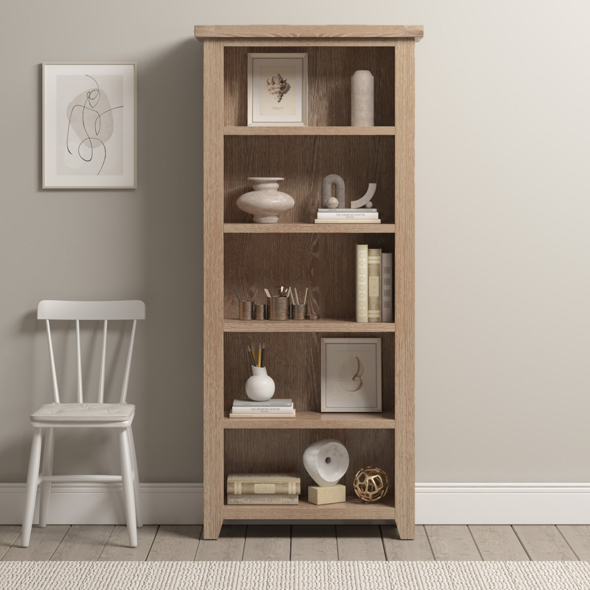 Introducing the Burford Large Bookcase in Natural Oak—a smooth blend of contemporary elegance and timeless craftsmanship. Expertly curated from quality oak, this stunning bookcase exudes sophistication and durability. Its sleek lines and classic design seamlessly integrate with any décor, while the rich, warm tones of the oak add a touch of natural beauty.