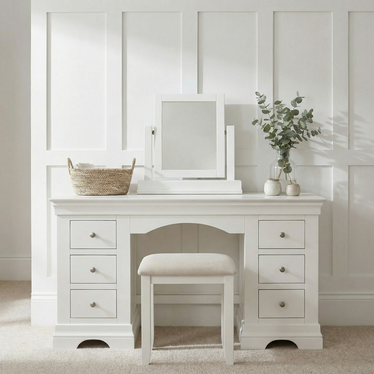 You can elevate your living space with the Chalbury Dressing Table in Warm White. Curated with high-quality materials and expertise, the dressing table is a testament to stylish sophistication, adding a modern touch to your bedroom.