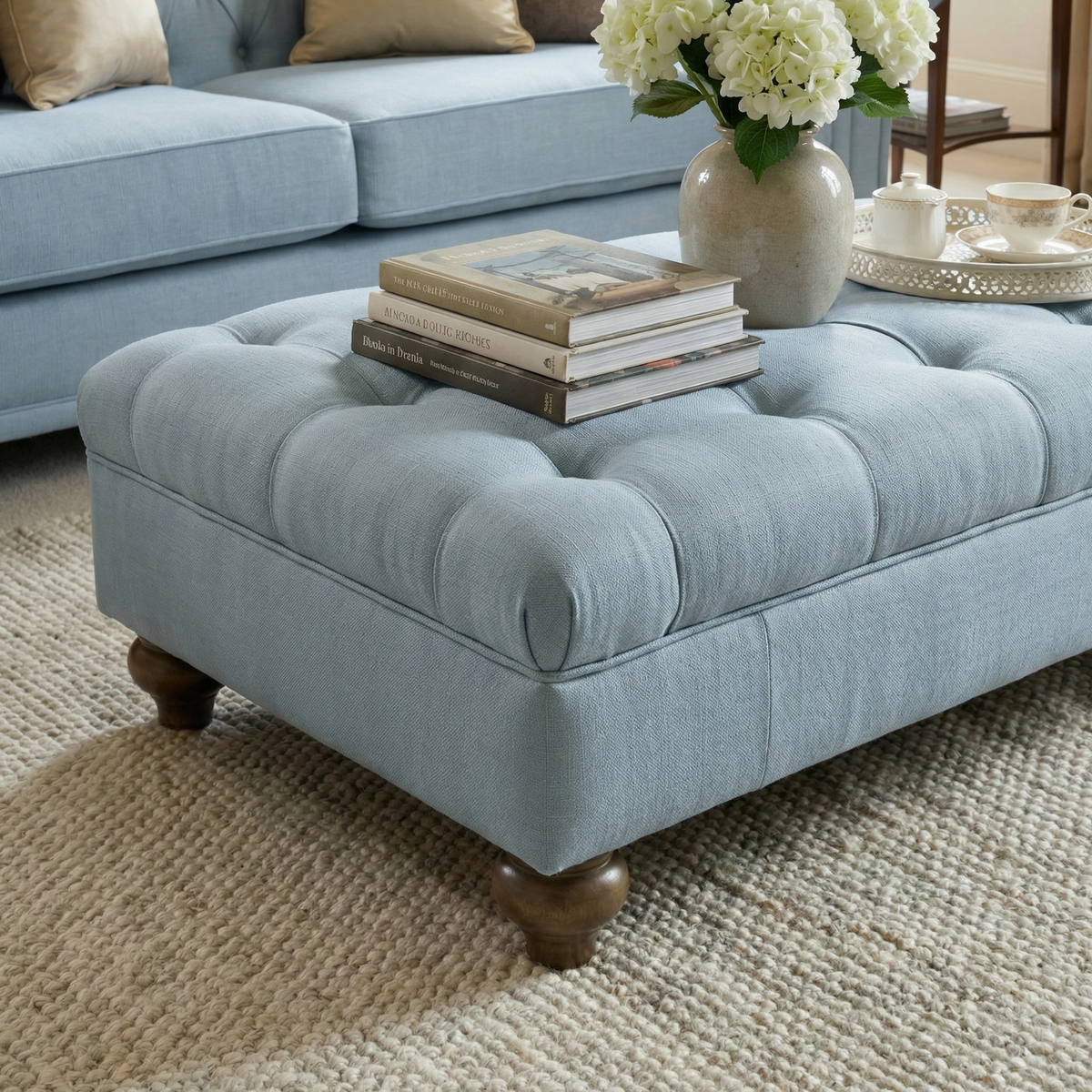 Chesterfield Footstool in Sky Blue