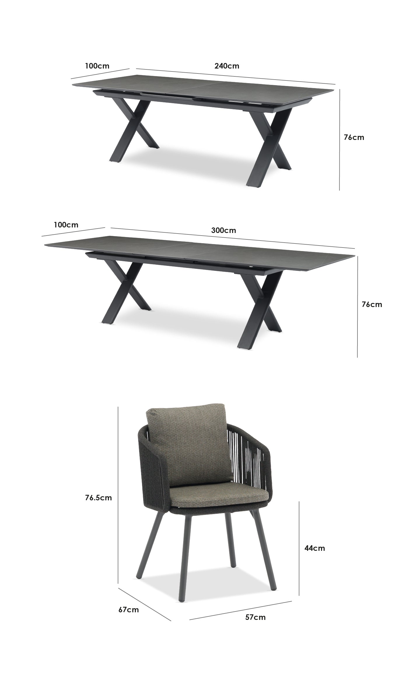 Dining Table: W240/300cm x D100cm x H76cm