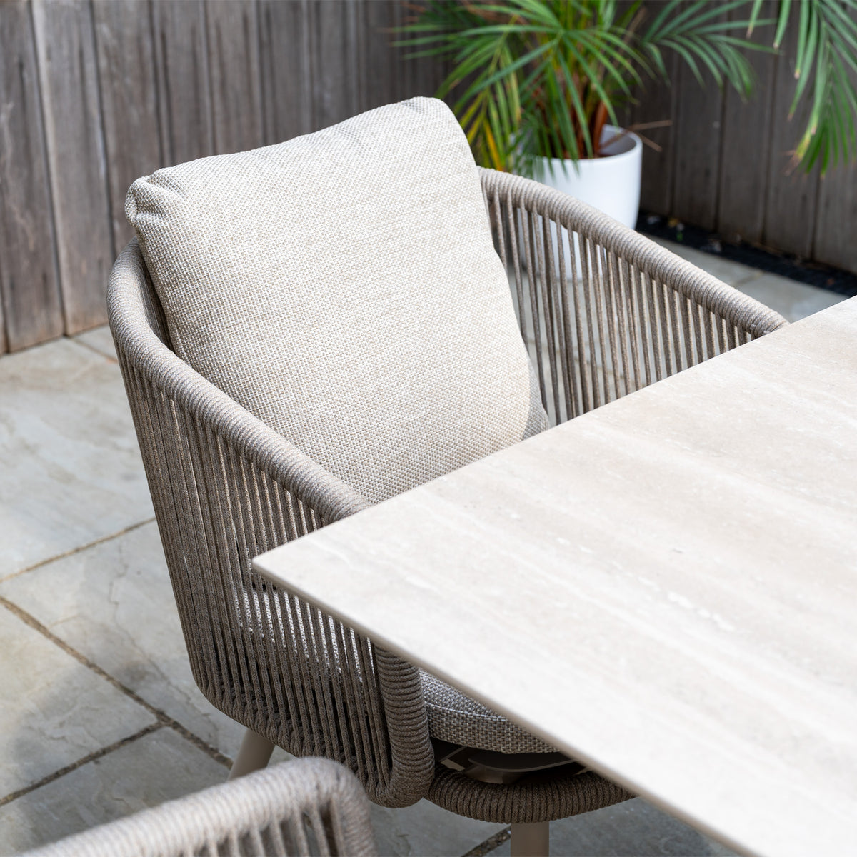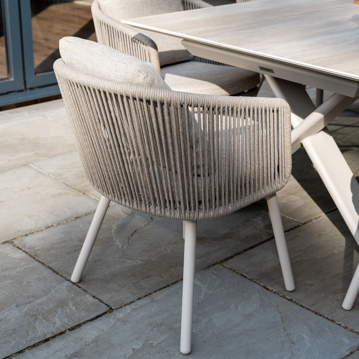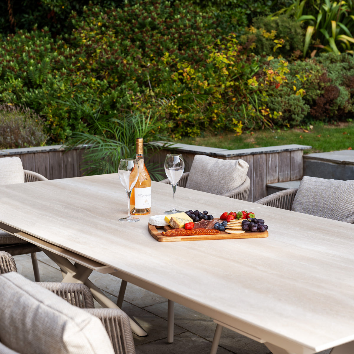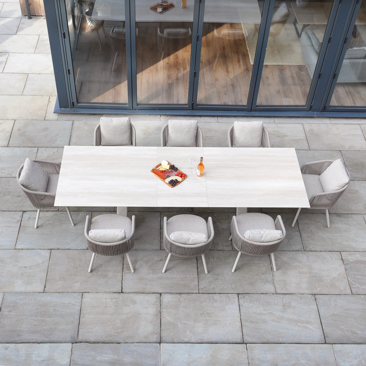 Dekota 8 Seat Rope Dining Set with Albatross Ceramic Extending Table in Fawn