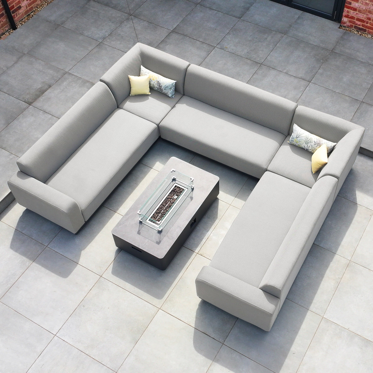 Luna U-Shape Outdoor Fabric Sofa Set with Firepit Coffee Table in Oyster Grey