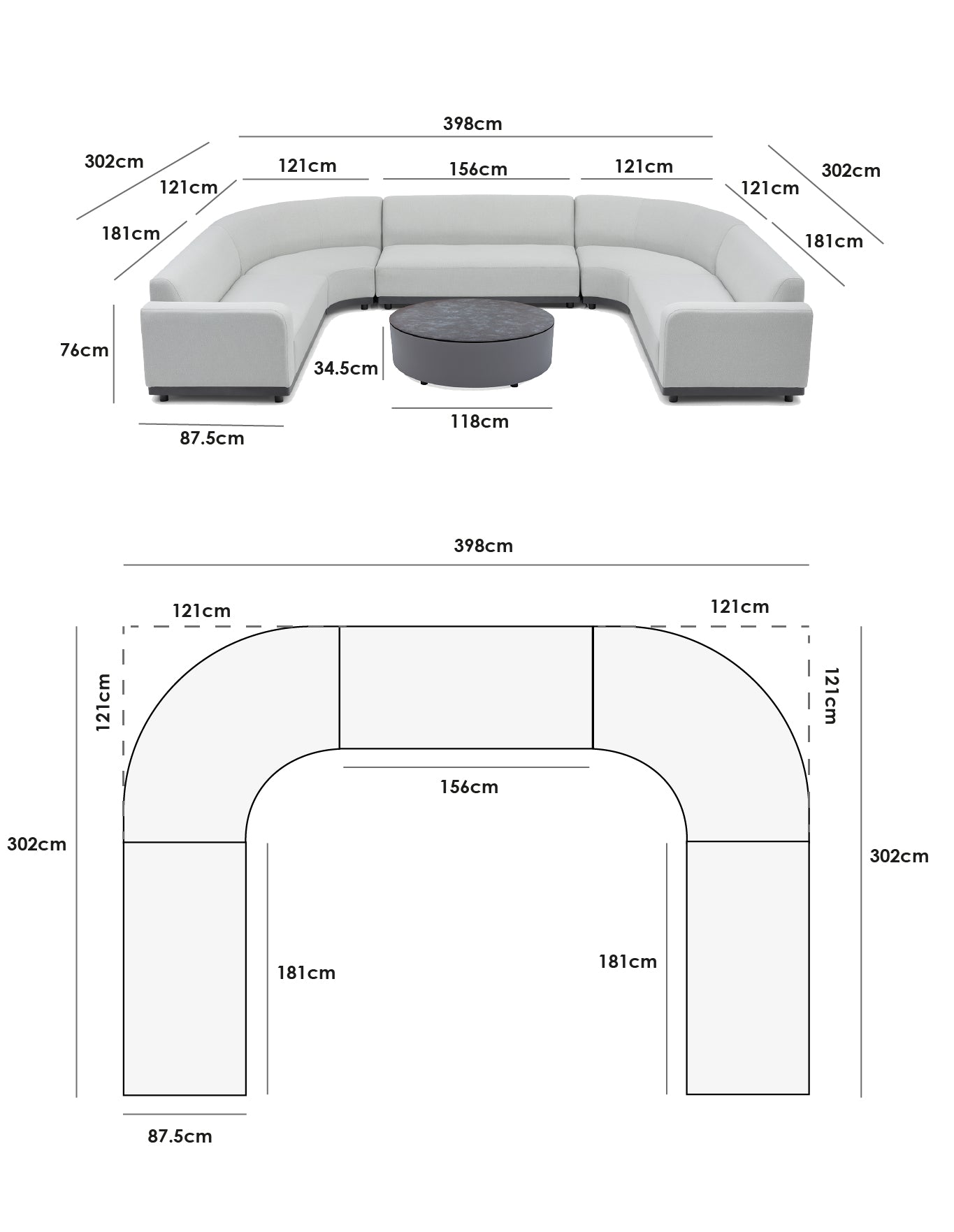 Elevate your outdoor living experience with the luxurious Luna U-Shape Curved Corner Group, a statement of style, comfort, and innovation. Designed for year-round use, this exquisite set combines elegant curves with superior craftsmanship, creating a stunning focal point for any outdoor space.