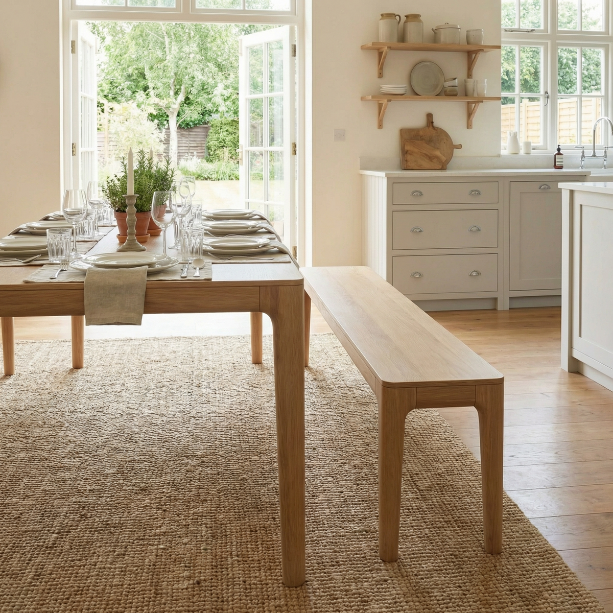 Whether bathed in soft morning light or candlelit in the evening, the Marlow set brings a natural elegance to your dining room. Its unassuming beauty lies in its proportions, its materials, and the way it quietly enhances whatever surrounds it whether it's stacked books, seasonal flowers, or your favourite linen runner.