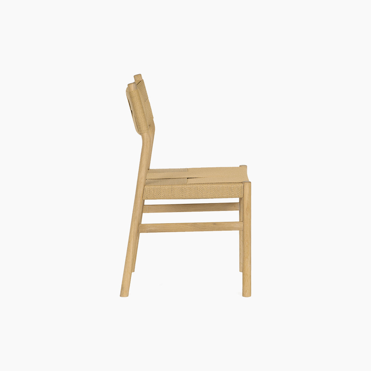 Paired with 4 dining chairs and 1 woven bench, the set strikes a perfect balance between simplicity and subtle detailing. Each chair features a solid oak frame and handwoven back rest and seat, adding texture and warmth. The slightly splayed legs and low, wraparound backrests create a sense of informality, inviting long, lingering meals and unhurried conversation. The bench features solid timber with a beautiful woven effect perfect for enhancing any dining area.