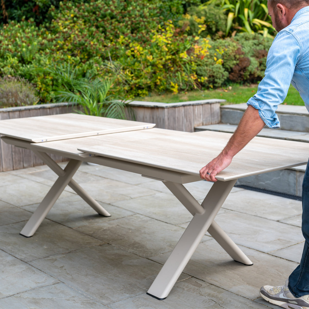Bring a sense of warmth and sophistication to your outdoor space with the Pello 8 Seat Dining Set with Albatross Extending Table in Fawn. Perfect for long summer lunches or relaxed evening gatherings, this elegant set balances contemporary design with enduring comfort. The soft, neutral Fawn tone adds a naturally inviting charm, making it an effortless fit for both modern and traditional gardens.