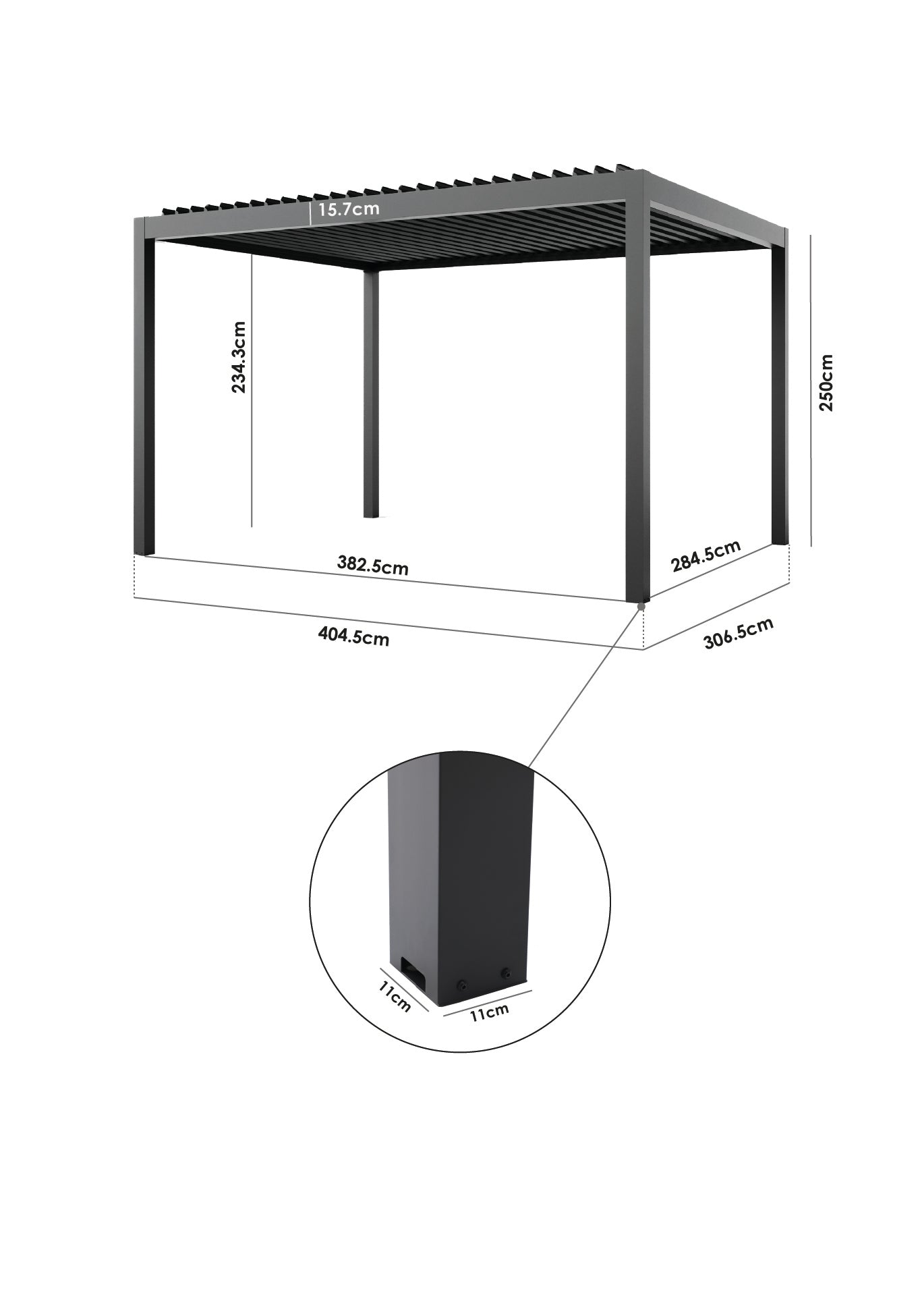 The incredibly well designed, built-in drainage system prevents you from having to open the louvred roof as any excess water that lands on the louvres, flow into u shaped channels. Water will not pool on top, as any excess rainwater will flow from the roof into the framework of the pergola, once in the horizontal framework, the rainwater flows into the legs and then vertically down to the ground. It's important to remember that pergolas are not watertight buildings and in the event of torrential rain, the water may not flow through the guttering system quick enough and therefore cause leakage, much like an overwhelmed gutter on a house.