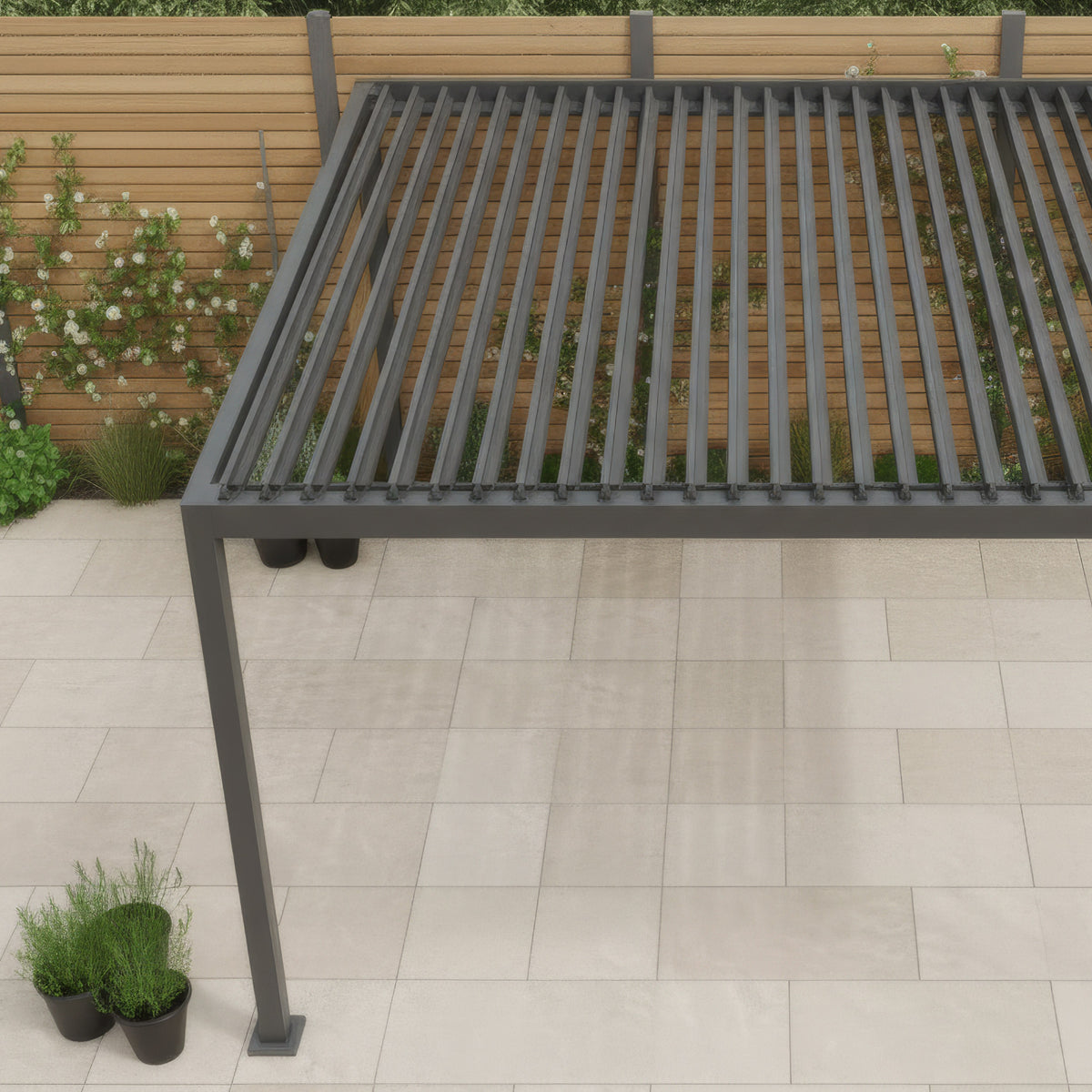 Assembly Required: We recommend 2-3 people to assemble, with an estimated assembly time of approximately 2-3 hours depending on skill level. PergoSTET pergolas must be installed on level surfaces to ensure the drainage system works efficiently; patios with a standard 1:80 fall for surface water runoff are acceptable, but significantly steeper falls may affect performance and void warranties. Once assembled, secure the pergola to the floor immediately using the provided bolts to maintain structural integrity and prevent beams from shifting. Unsecured feet leave the pergola vulnerable to movement, compromising durability and safety. Assemble during suitable weather conditions to minimize risks and ensure a safe and successful installation.
