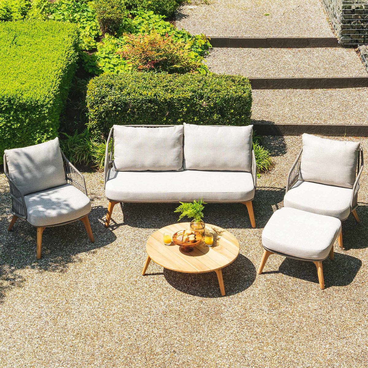 Sempre 2 Seat Sofa Set with Teak Louvred Table and Footstool in Light Grey