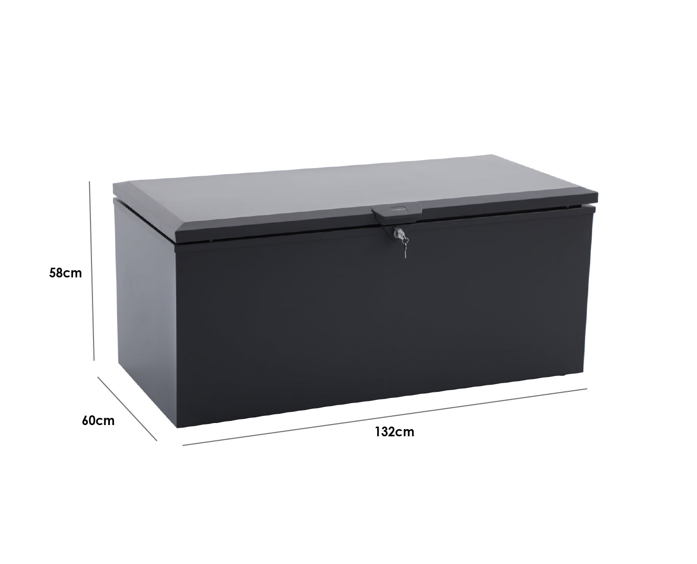 This Storage Box can protect items from rain and damp weather, thanks to the watertight seal. It is crafted from sleek smooth steel which is Tiger Drylac ® Powder Coated to ensure it keeps its quality throughout when met with the elements.