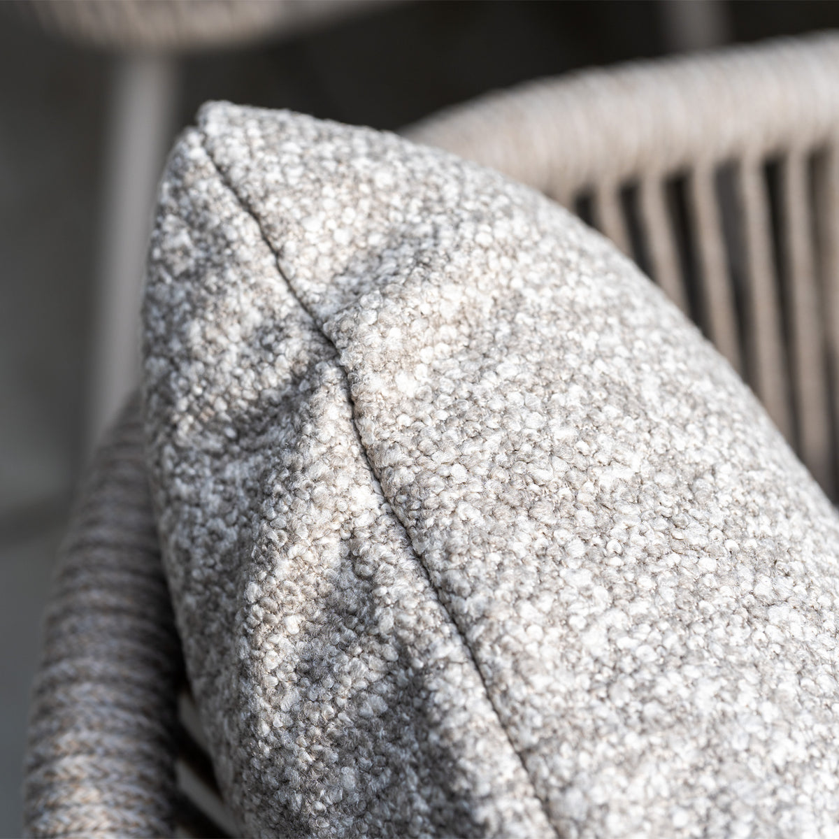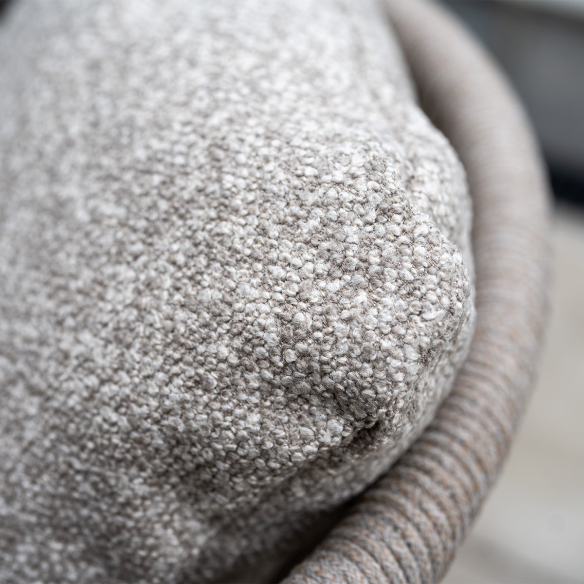 This set features a beautifully textured, boucle-like fabric in an oatmeal shade known for its soft and elegant feel. It elevates any garden space, not only adding depth and dimension but also a touch of relaxed luxury that feels effortlessly chic. This oatmeal toned fabric brings a cosy, cocooning comfort you'll want to sink into, making it as much about feel as it is about style.