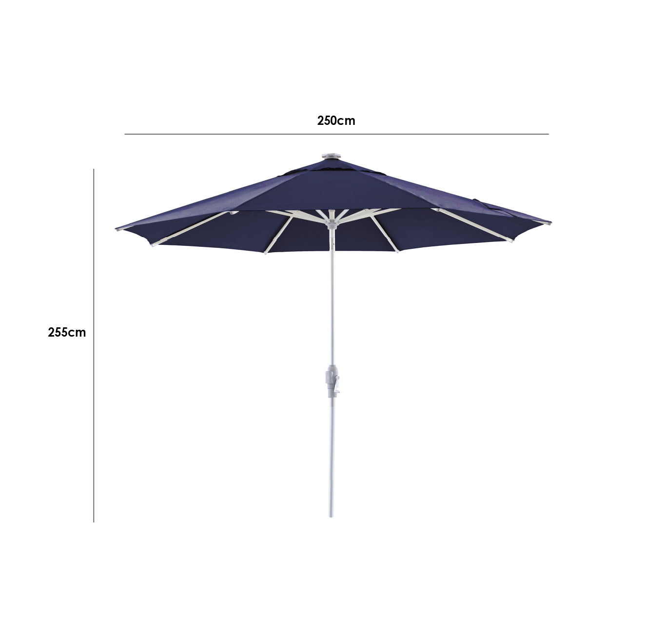 Zelos 2.5M Round Parasol with LED Lighting in Navy